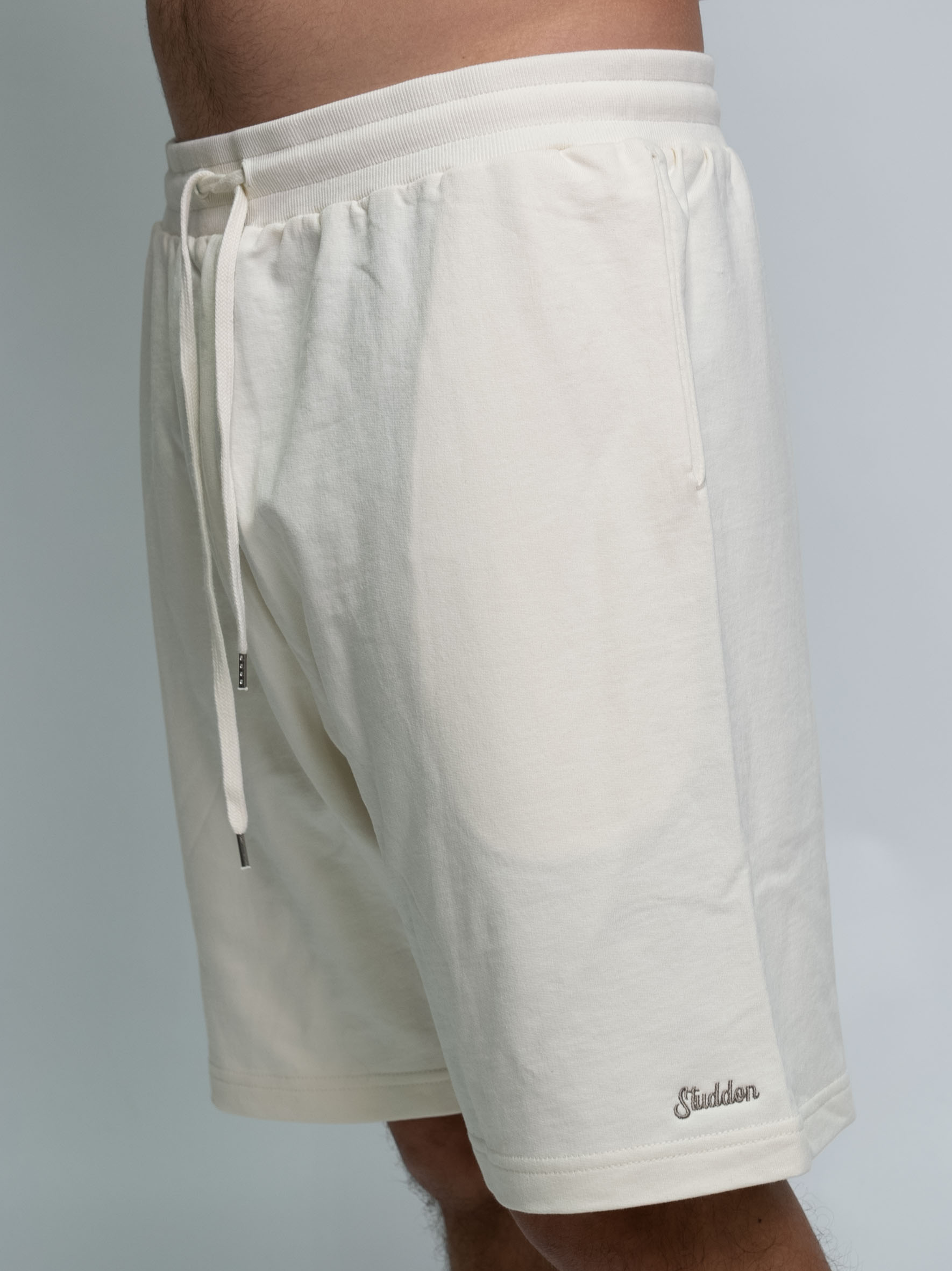 Sweat shorts, 2 side and 1 back pocket, 2X2 ribbed waistband, tonal external drawcord, double needle hems, preshrunk to minimise shrinkage